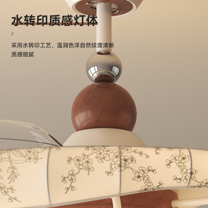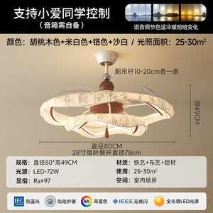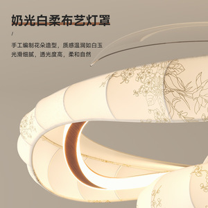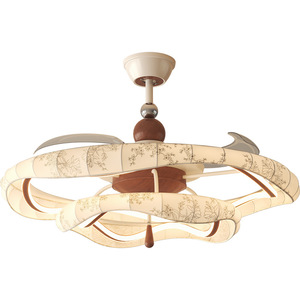 宋氏美学インビジブルファンライト リビングルーム ダイニングルーム フルスペクトル レトロシーリングファンライト 花柄布製 目に優しいファンライト