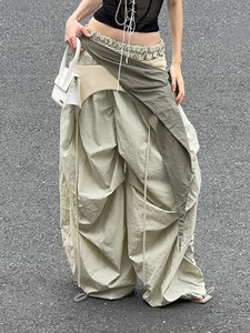 街头西海岸个性设计感多层拼接不规则撞色休闲裤宽松工装裤长裤潮