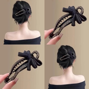 ネットセレブのサマーダイヤモンドリボンクリップ、フェミニンな後頭部ヘアクリップ、ファッショナブルで多用途なカモノハシクリップヘアアクセサリー