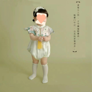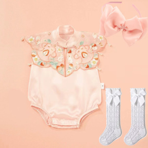夏款天丝爬服中式丝绸刺绣女宝宝满月百天连体衣真丝抓周岁宴礼服