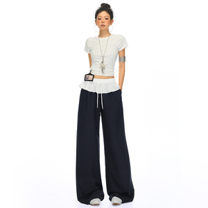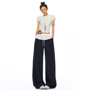 偽ツーピースフリルスプライシングワイドレッグパンツ女性のための 2025 夏の新しいストレートルーズハイウエストスリムカジュアルパンツ
