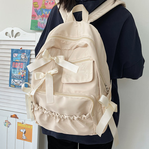 日本のアニメ風女子学生風リュックサック、可愛い配色のリボン付きリュックサック、女性用リュックサック