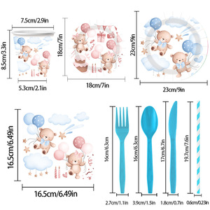在庫ありクマバルーンテーマ子供の誕生日パーティー装飾用品使い捨て紙皿食器セット卸売