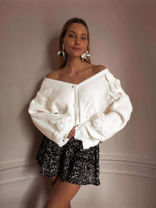 跨境2025新款秋冬毛衣内搭V领短款羊毛针织小开衫立体花设计女装