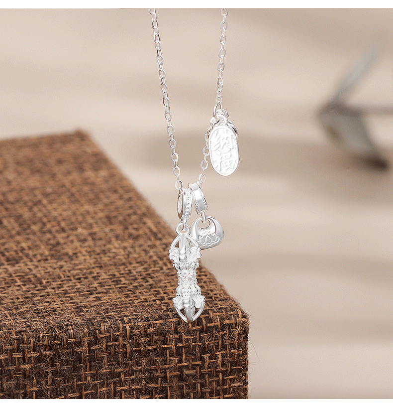 s925纯银莲蓬莲花金刚杵项链女挂坠招财纳福牌子小众设计感新中式