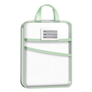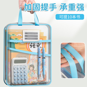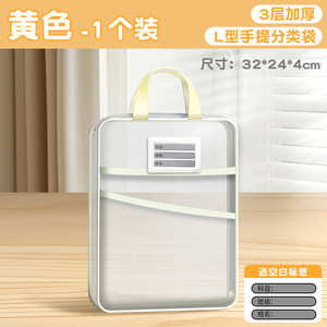 L型科目分类袋透明文件袋拉链式网纱大开口学生手提拎书袋补习袋