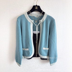 高版本CH家25夏季新款小香风高级感五金logo纽扣V领针织短袖上衣