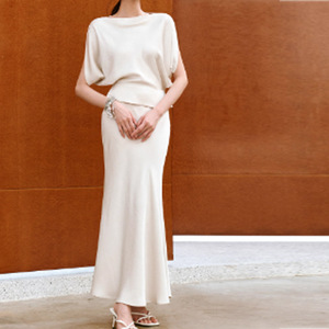 WAN|星点撒银抓皱双面缎|静奢风一字领上衣&斜裁鱼尾裙套装