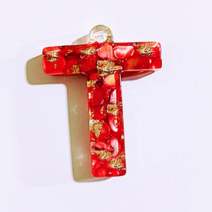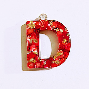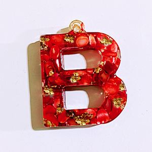 厂家现货英文字母diy饰品配件珊瑚红树脂字母钥匙扣配件挂件吊坠