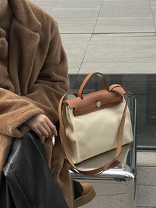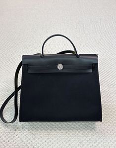 2025 新しいハイエンドキャンバスと牛革のハーバッグケリーバッグ大容量通勤ショルダークロスボディハンドバッグ