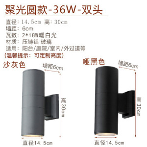 led防水壁灯双向发光庭院灯阳台民宿酒店柱子门头单双头发光壁灯