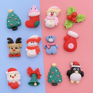 圣诞节树脂配件DIY圣诞饰品配件雪人麋鹿老人卡通发夹发饰品配饰