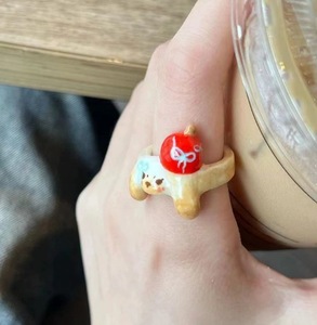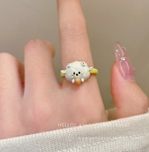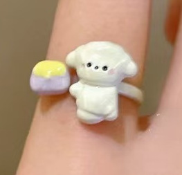 楽しい漫画の動物の子犬リング女性のニッチデザイン甘いリング調節可能なクリエイティブかわいい人差し指リング