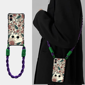 カラフルな猫 iPhone15promax 携帯電話ケース 新しい Apple 14 オールインクルーシブ 13 ソフト接着剤 12 クロスボディロープ 11 落下防止