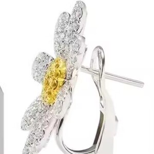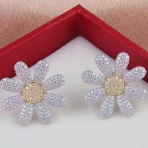 Quan Zilong コンサートと同じスタイルのフルダイヤモンドひまわりデイジーイヤリング、甘くて多用途、軽い高級イヤリング、男性と女性用