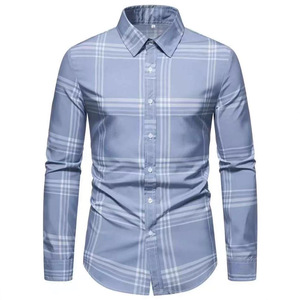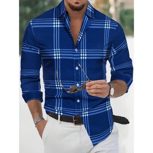2025 新しいクロスボーダー外国貿易メンズ 3D デジタル印刷シャツチェック柄カジュアル春と秋の男性用長袖シャツ