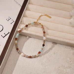 淡水珍珠混色天然石手链夏日多巴胺项链气质网红寿山石玛瑙锁骨链