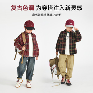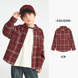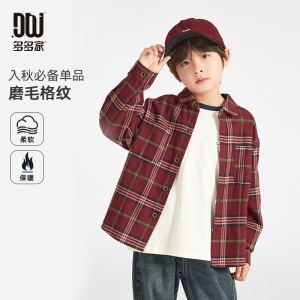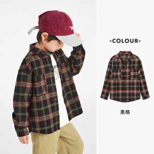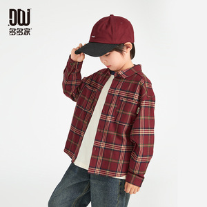 Duojia 男の子シャツハンサムな春と秋の純綿トップス子供のチェック柄パッチポケットラペル長袖薄手のジャケット