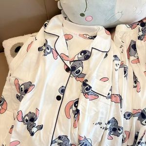 甜美卡通史迪仔睡衣女春秋季长袖长裤ins套装可外穿美少女家居服