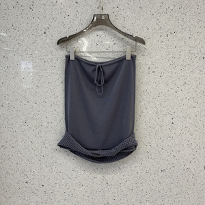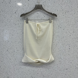 下摆扭结针织拼接蝴蝶结系带一字肩羊毛抹胸背心女