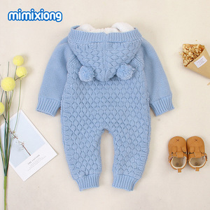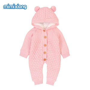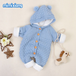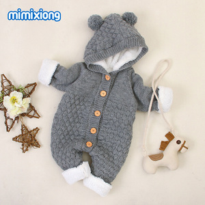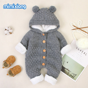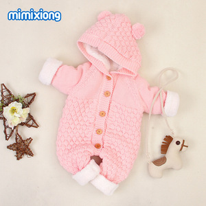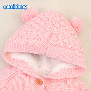 ins ホットセールプラスベルベットと厚みのある子供用立体毛玉フード付きニットジャンプスーツ