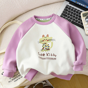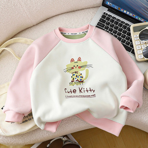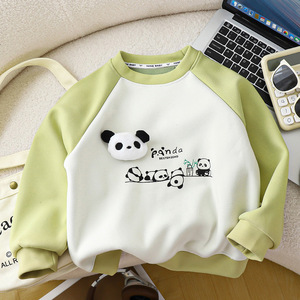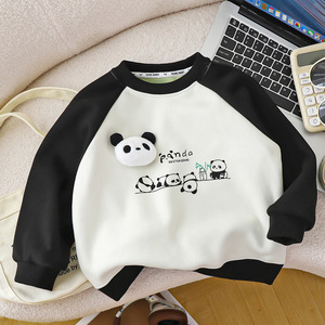 儿童奥粒绒卫衣秋冬加绒加厚保暖卡通玩偶圆领长袖套头T恤单上衣