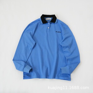 海外衣料品卸売 25 コントラストカラー二重襟刺繍文字長袖 T シャツポロシャツ男性と女性用 (オリジナルラベル)