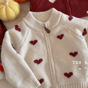 儿童韩国童装女童拉链毛衣开衫秋冬新款女宝宝爱心提花针织衫外套