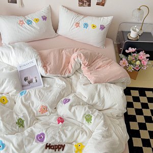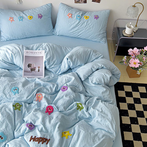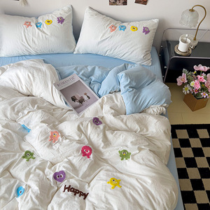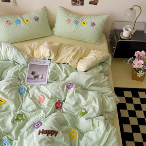クラスAインベッドウォッシュコットン4点セット2025新作ハイエンド刺繍ベッドシーツと掛け布団カバー学生寮3点セット