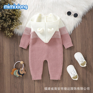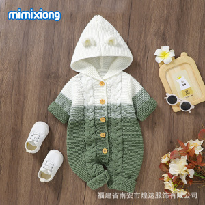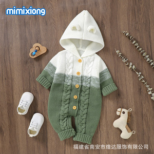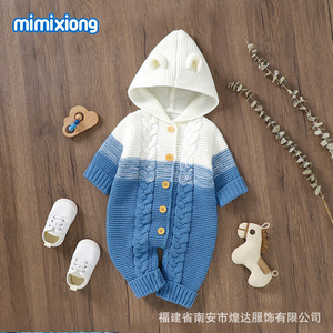 ins ホットセール幼児と幼児の秋と冬のニット厚い麻の糸のウールのワンピースハイハイスーツ男の子と女の子用