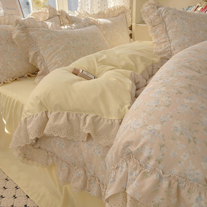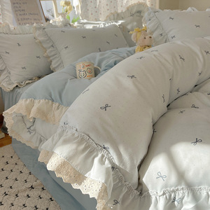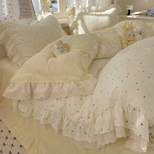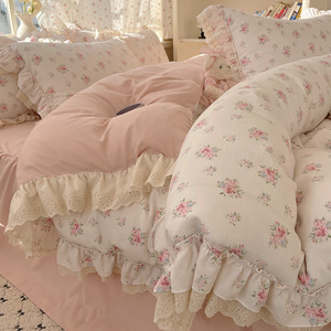 クラスA二重糸韓国風ガーリーハートベッド4点セットプリンセス風レースキルトカバーシーツベッドスカート寝具4