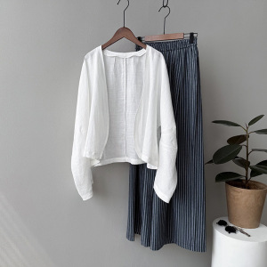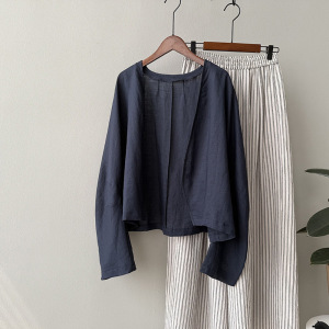 文学レトロラミー長袖カーディガンジャケット女性の夏のルーズ多用途日焼け止めシャツトップリネンショートジャケット