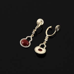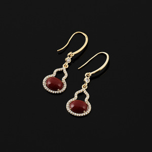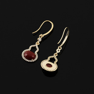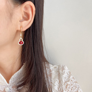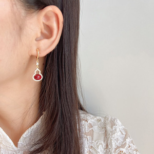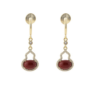 EH1386 新中国風レトロ赤ひょうたんイヤリングイヤリング中国風ジルコン蚊よけイヤークリップノンホールイヤリング