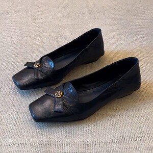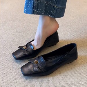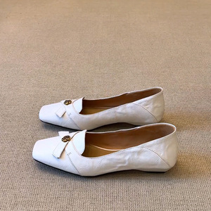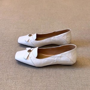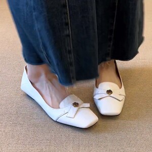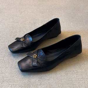 在庫あり〜本革レトロリボンスリッポン浅口シングルシューズ女性用英国スタイル椿通勤小さな革靴