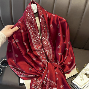 新しい夏の日焼け止めシルクスカーフ女性のための錦織プリント拡張ショール装飾ママスカーフビーチタオル