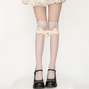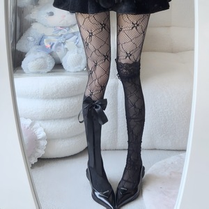 ロリータ花柄網タイツ中空リボンパンスト純粋な欲望ロリータ中空白ストッキングクリエイティブレイヤリング