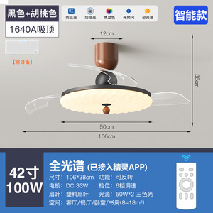 【已接入精灵APP】42-1640A黑色+胡桃色-吊杆+变光遥控