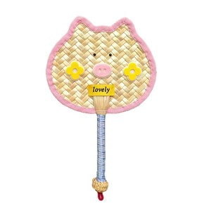 Shuli ピギーファン ウィーウィーファン 夏の蚊よけ かわいい動物 手織りファン クリエイティブ ポータブル 手回しファン