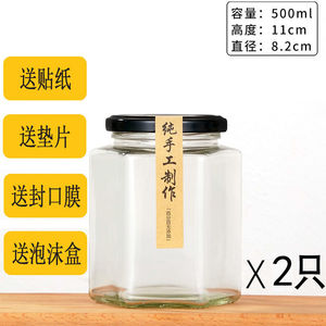 六角ガラス瓶密封食品グレードの小さな空の蓋付き 0.5kg レモンペースト蜂蜜チリジャムボトル卸売