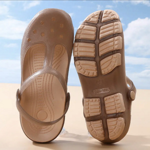 夏の新しいアウターウェア女性用ゼリーホールシューズ、滑り止め、防臭、医療用ウェッジヒール、柔らかい厚底つま先ビーチサンダル