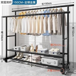 落地挂衣架加粗衣帽架室内加厚可移动带轮晾衣架阳台晾晒衣服架子
