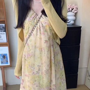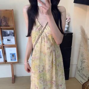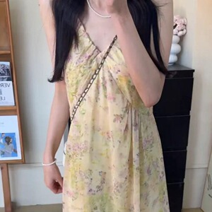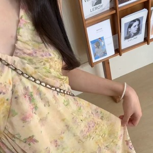 チーズジャスミン 2025 新作夏花柄サスペンダースカートティーブレイクフレンチ優しいガーリー万能ドレスロングスカート