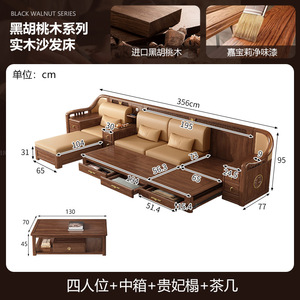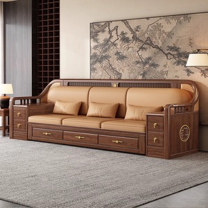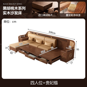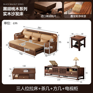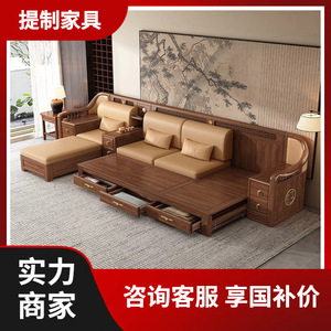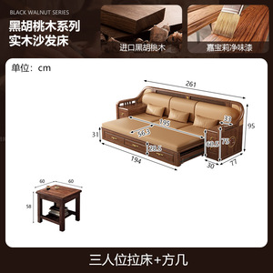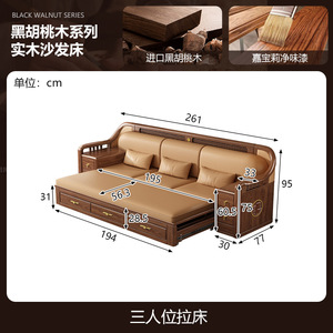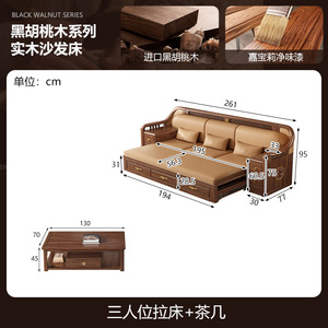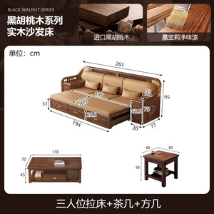 新しい中国風の大小のリビングルームブラックウォールナット無垢材引き出し式ソファベッド折りたたみベッド多機能伸縮ベッド組み合わせ