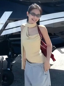 jennie同款时尚绑带荡领挂脖修身短款上衣设计感无袖修身显瘦上衣