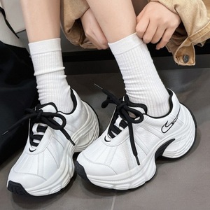 パリショー本革ストリートダッドシューズ女性用2025春厚底増量白靴真珠光沢のあるスポーツとレジャー