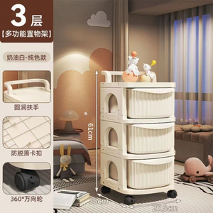 小推车零食置物架婴儿用品收纳落地移动宝宝家用玩具储物架奶油