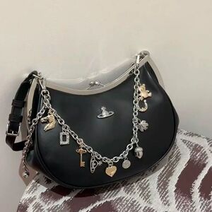 2025新款西太逅土星饺子包链条夹子包单肩斜挎女包法式高级爆裂纹