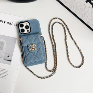 iPhone 16 Pro Max 携帯電話ケースに適した新しいデニム刺繍ゴールドロックカードホルダーオールインクルーシブ携帯電話ケース