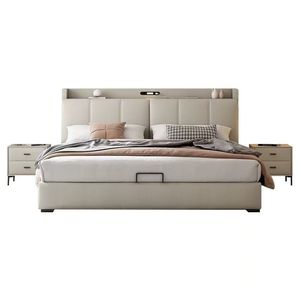 多功能床现代简约带抽屉储物收纳家用主卧1米8双人床真皮软包婚床