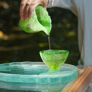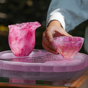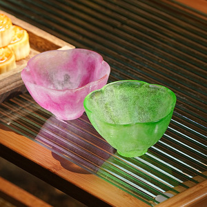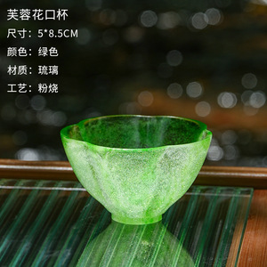 古法琉璃失蜡法粉彩粉烧琉璃茶盏芙蓉花口酒杯子杯垫套装不可开水